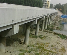 項目技術(shù)指標(biāo):孔徑為16-13m,橋長213.04米,斜交角度90,橋面寬度:8米,設(shè)計速度:20km/h。