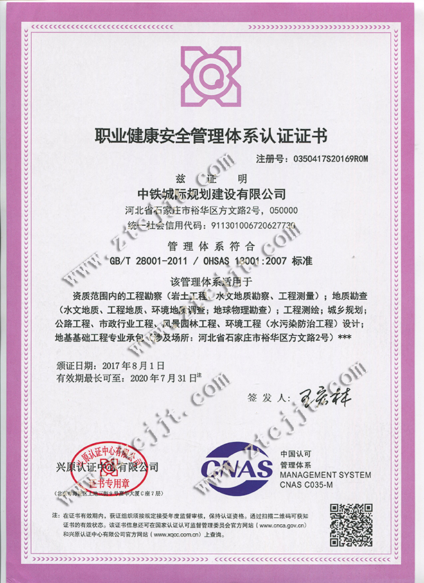 2017年8月1日,公司順利取得興原認證中心認證的“質量、環境、職業健康安全三大管理體系證書”。