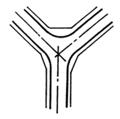 是道路盡端與別條道路相交的主要形式;一般用于次要道路與主要干道相交的交叉處,應(yīng)優(yōu)先保證主要干道的交通通暢。