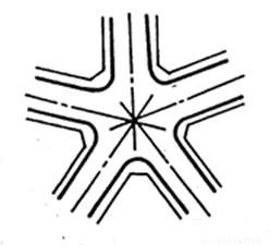 用于多條道路交叉處;一般用地較大、交通組織復(fù)雜,應(yīng)盡量避免。