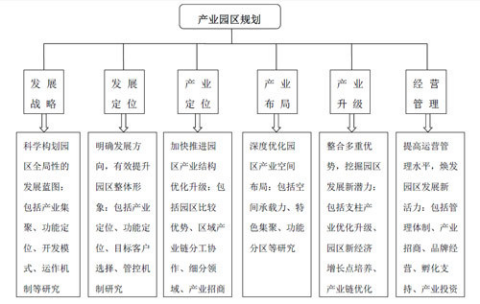 形式上來看,產業園區規劃可以依次分為發展戰略、 發展定位、產業定位、產業布局、產業升級、經營管理等六個模塊,它們之間環環相扣,具有較強的內在邏輯關系 。