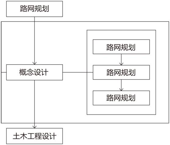 主要程序中,概念設計是溝通規劃和土木設計的橋梁。概念設計不同于簡單的工程方案設計,運用系統學原理,以上位路網規劃為依據,采用一體化設計思想,聯系規劃和土木工程設計,能夠較好地實現規劃意圖。