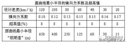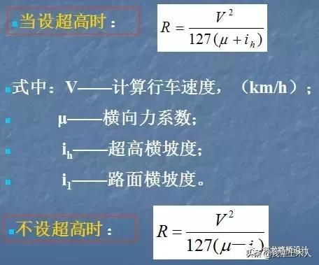 是各級公路采用允許超高ih和橫向摩阻φh下保證安全行車的最小允許半徑。