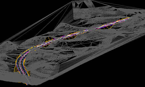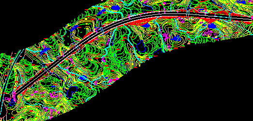 平面縱面都確定了,那么道路中線的空間位置就確定了。那么把左右50m左右的高程都讀出來。那么一條路就基本呈現出來。