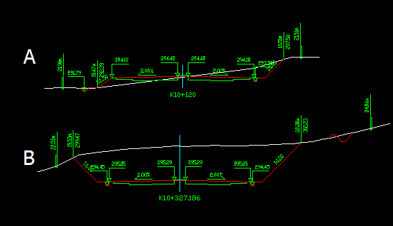 B截面就全是挖方段,要把土挖走運到別的地方。