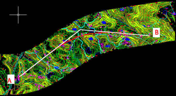 我們拿到的圖一般是要修路區域的帶狀地形圖。比如我手里圖是這樣的。【只截了2公里】【1】平曲線設計。