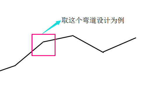 白線是大致走向,然后進行平曲線設計(就是具體定下這個彎怎么過,比如我們經過計算定出了紅線)一般的路是拐來拐去的,比如: