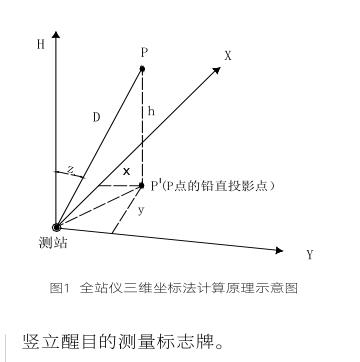 P點這個定位點的三維坐標方程式是根據(jù)全站儀三維坐標法測量原理而建立的,圖1為全站儀三維坐標法計算原理。