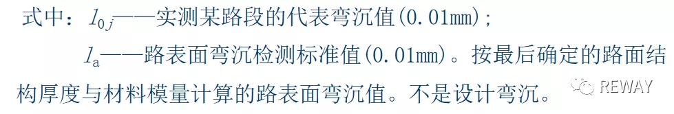 8.0.15 路面交工時應在不利季節以BZZ-100標準軸載作用下,實測輪隙中心處路表彎沉值,其彎沉代表值應符合式(8.0.15-1)的要求。即: