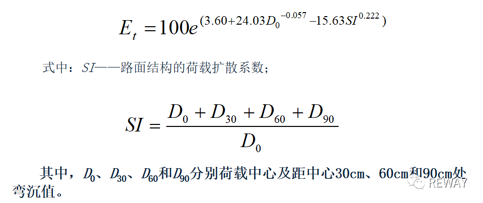 8.0.9 以路表彎沉值為設計或驗算指標時,設計參數采用抗壓回彈模量,對于瀝青混凝土試驗溫度為20℃;計算路表彎沉值時,抗壓回彈模量設計值E應按式(8.0.9)計算。