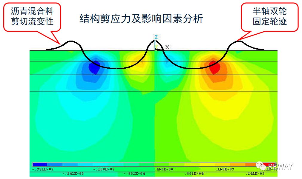 對于公路來講,不會象城市道路那樣出現過多制動與起車,因而水平荷載要小得多,考慮車輛行車荷載的滾動摩阻力。但對于山區高速公路或者縱坡較大、坡度超長路段應考慮車輛荷載的水平分量所產生的路表剪應力。目前瀝青路面抗剪強度設計指標的研究尚不成熟,未列入本次規范修訂的內容。