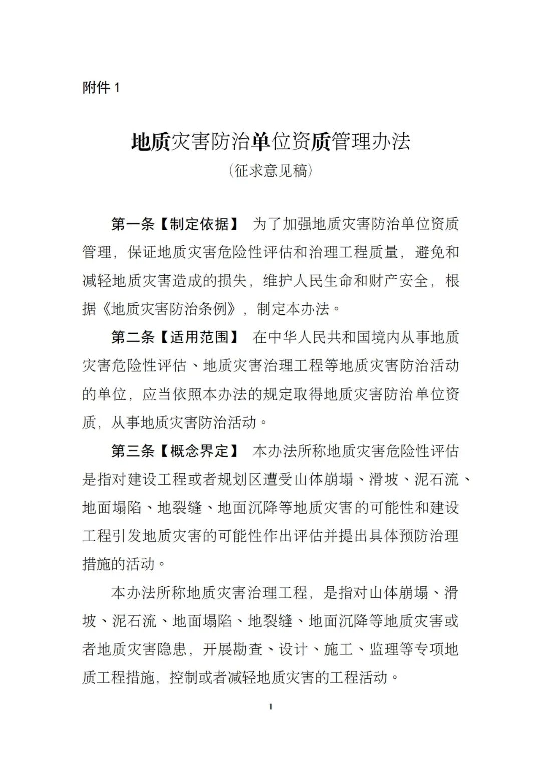 1.地質災害防治單位資質管理辦法(征求意見稿)2.關于《地質災害防治單位資質管理辦法(征求意見稿)》的起草說明