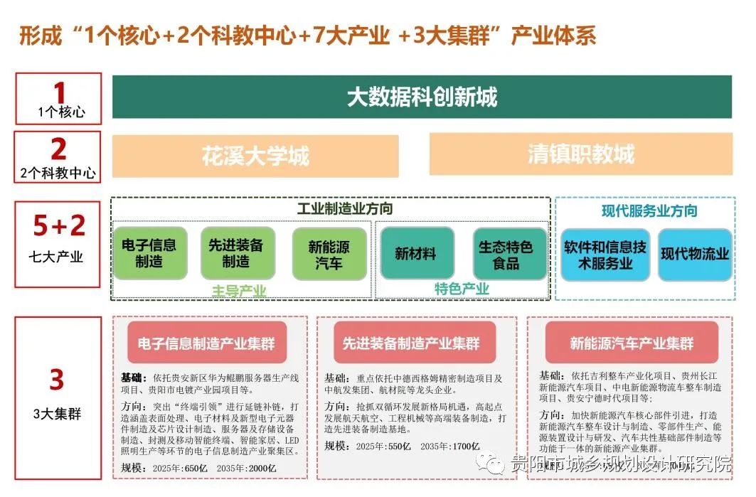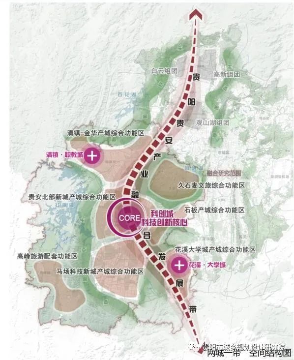 七區(qū):七個(gè)功能區(qū)‘’包括清鎮(zhèn)-金華、貴安北部新城、馬場(chǎng)科技新城、石板、花溪大學(xué)城五大產(chǎn)城綜合功能區(qū),以及久石麥文旅綜合功能區(qū)和高峰旅游配套功能區(qū)。