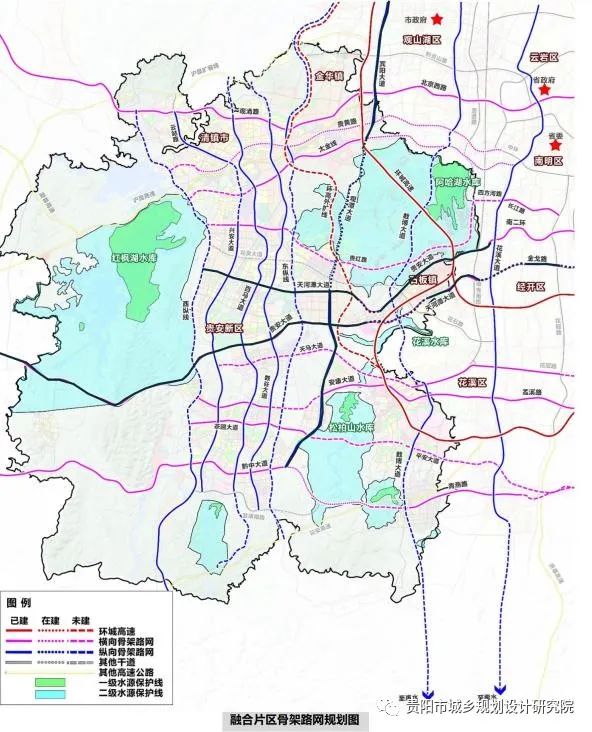融合城市空間規(guī)劃發(fā)展需求,加強(qiáng)交通對(duì)產(chǎn)業(yè)服務(wù),順應(yīng)山地城市特點(diǎn),在融合片區(qū)打造“十橫十縱”骨架路網(wǎng),支撐貴陽(yáng)貴安融合發(fā)展。