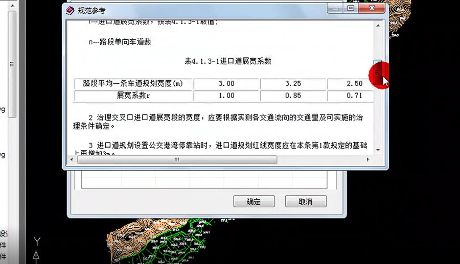 2)對不同等級道路交叉的渠化中展寬段長度、漸變段長度內置了數據庫,我們可以對數據進行編輯和修改。