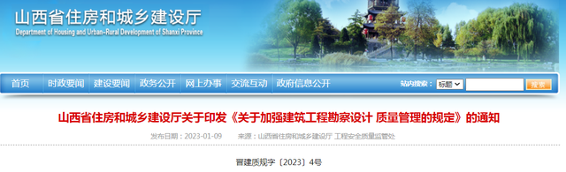 山西印發(fā)《關(guān)于加強(qiáng)建筑工程勘察設(shè)計(jì) 質(zhì)量管理的規(guī)定》