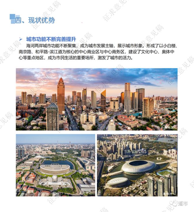 通過研讀,我們看到,天津要實現(xiàn)的“三更”目標:其一,更靚麗的中央活力區(qū)。其二,更生態(tài)宜居的一環(huán)十一園地區(qū)。其三,更美好的城市近郊區(qū)。推動津城高質(zhì)量發(fā)展。