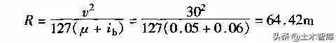 根據(jù)式(1-2-5)不設(shè)超高的最小半徑公式: