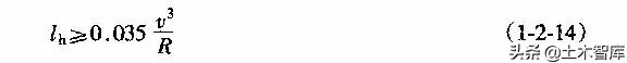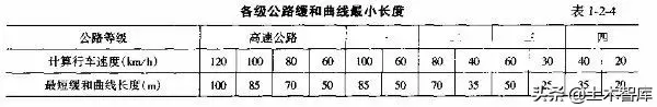 上式表明.最短的緩和曲線與半徑的大小無關(guān),即使平曲線半徑較大,當(dāng)汽車高速行駛時,也應(yīng)有個轉(zhuǎn)變過程,因而式(1-2-15)是高等級公路設(shè)置緩和曲線的校核式。