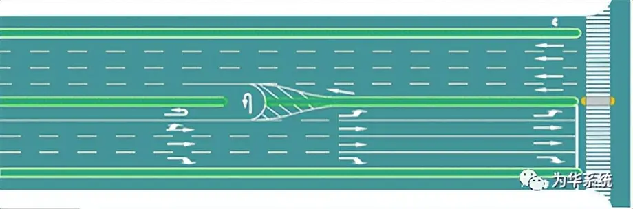 圖5 縮小中分帶寬度并壓縮車(chē)道寬度設(shè)置左轉(zhuǎn)專用車(chē)道