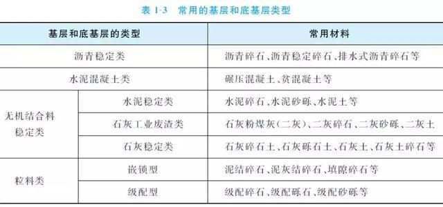 修筑基層和底基層的材料主要有各種結合料(如石灰、水泥、瀝青等)穩定土或穩定碎(礫)石、貧水泥混凝土、天然砂礫、碎石、礫石、片石、塊石,各種工業廢渣(如煤渣、粉煤灰、礦渣、石灰渣等)和土、砂、石所組成的混合料等。常用的基層和底基層類型見表1-3。