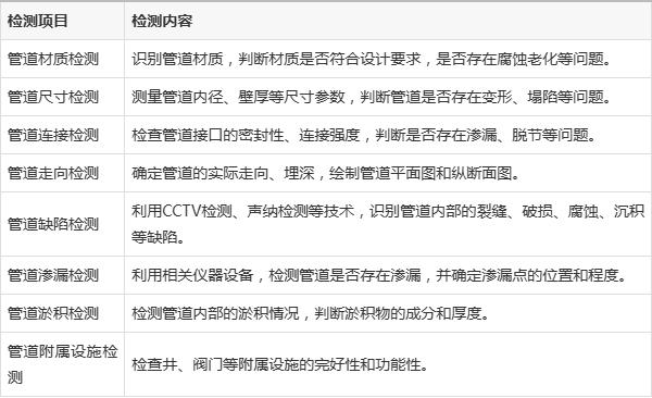 地下管網檢測項目涵蓋以下方面: