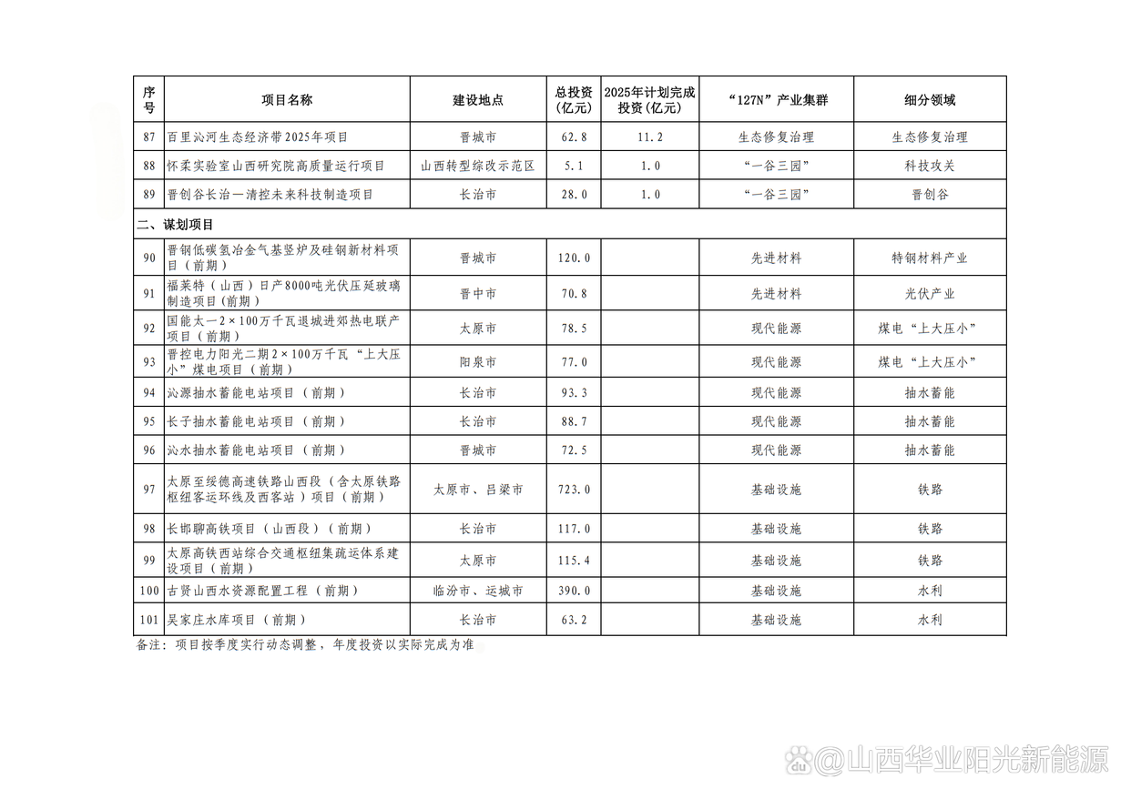 2.山西晉北新能源基地項目(含湖東“上大壓小”、同熱三期、風電光伏3個子項目),總投資553億元,年度計劃投資169.8億元,建設(shè)地點大同市。