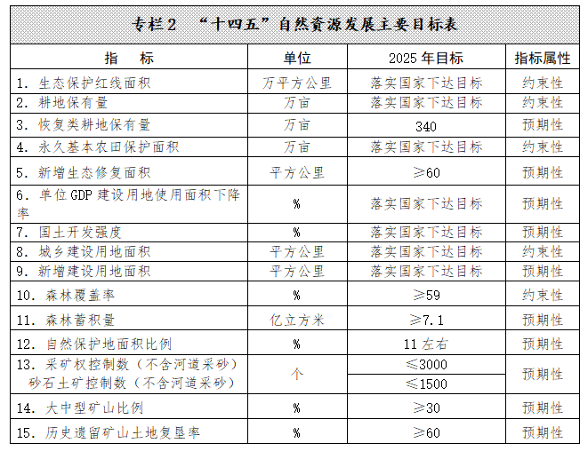 ——高質量發展的資源要素保障能力全面加強。自然資源市場化配置效率顯著提高,高質量發展用地需求應保盡保,優勢礦種保障能力明顯提升,新增建設用地規模控制在國家下達目標內,采礦權數控制在3000個以內,其中砂石土礦控制在1500個以內。