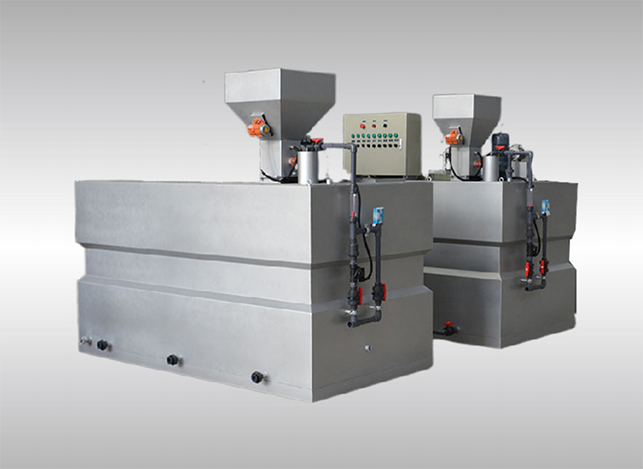 設備包括浸潤器、溶藥攪拌器、加藥泵、稀釋裝置、儀表、管路、管路附件、控制柜。此控制柜既可手動按鈕控制,也可與 PLC控制柜聯動控制。