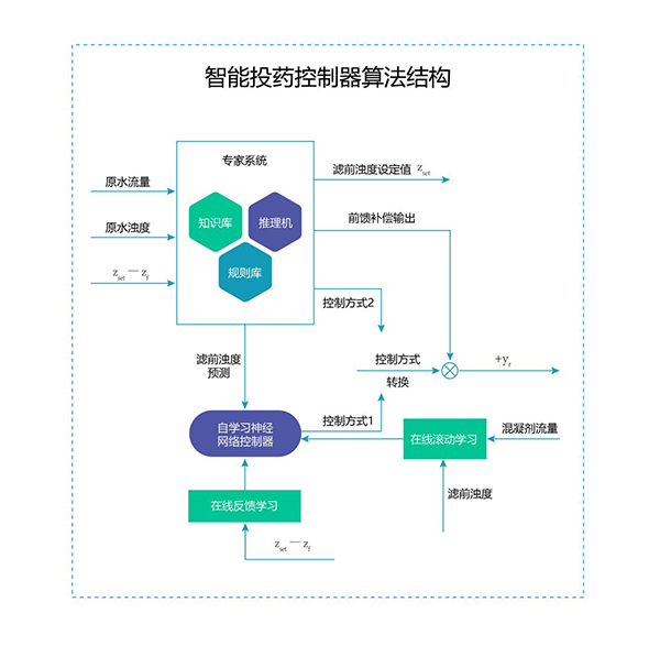 智能加藥系統像人類大腦一樣具備接收、存儲、分析信息等功能,基安云智能加藥系統采用 “前饋 + 反饋”的閉環控制模式。